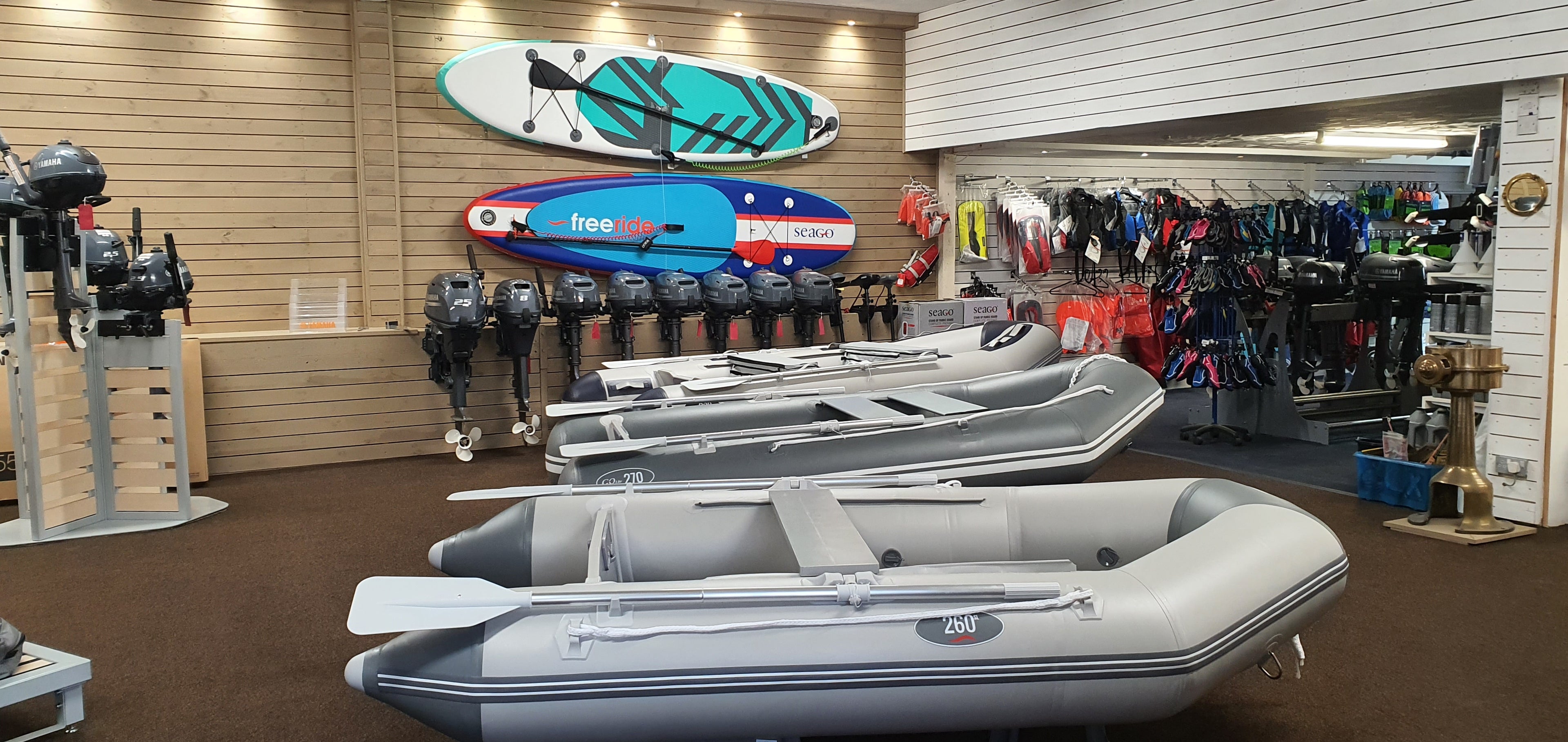 We have an extensive chandlery shop offering you the very best marine equipment, we offer a full range of life jackets, buoyancy aids, wetsuits, small inflatable tenders and paddleboards.