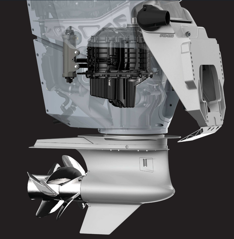A more rugged, more refined next-generation Advanced MidSection (AMS) mounting system cradles the powerhead to isolate noise and vibration, while careful tuning dampens induction sounds and nearly eliminates injection noise. 600hp never sounded so quiet.
